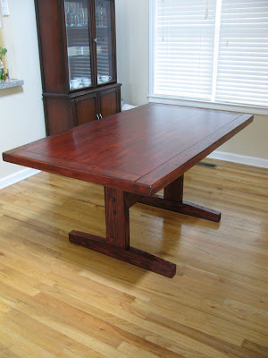 Glen finally finished our table! I am so excited to finally have a dining room table back and not have to lean over our coffee table with might slightly large belly to try to eat. One problem- we ordered 2 benches and 2 chairs to go with the table and the benches had to be specially ordered. Good thing we have folding chairs to fill in while we wait!
